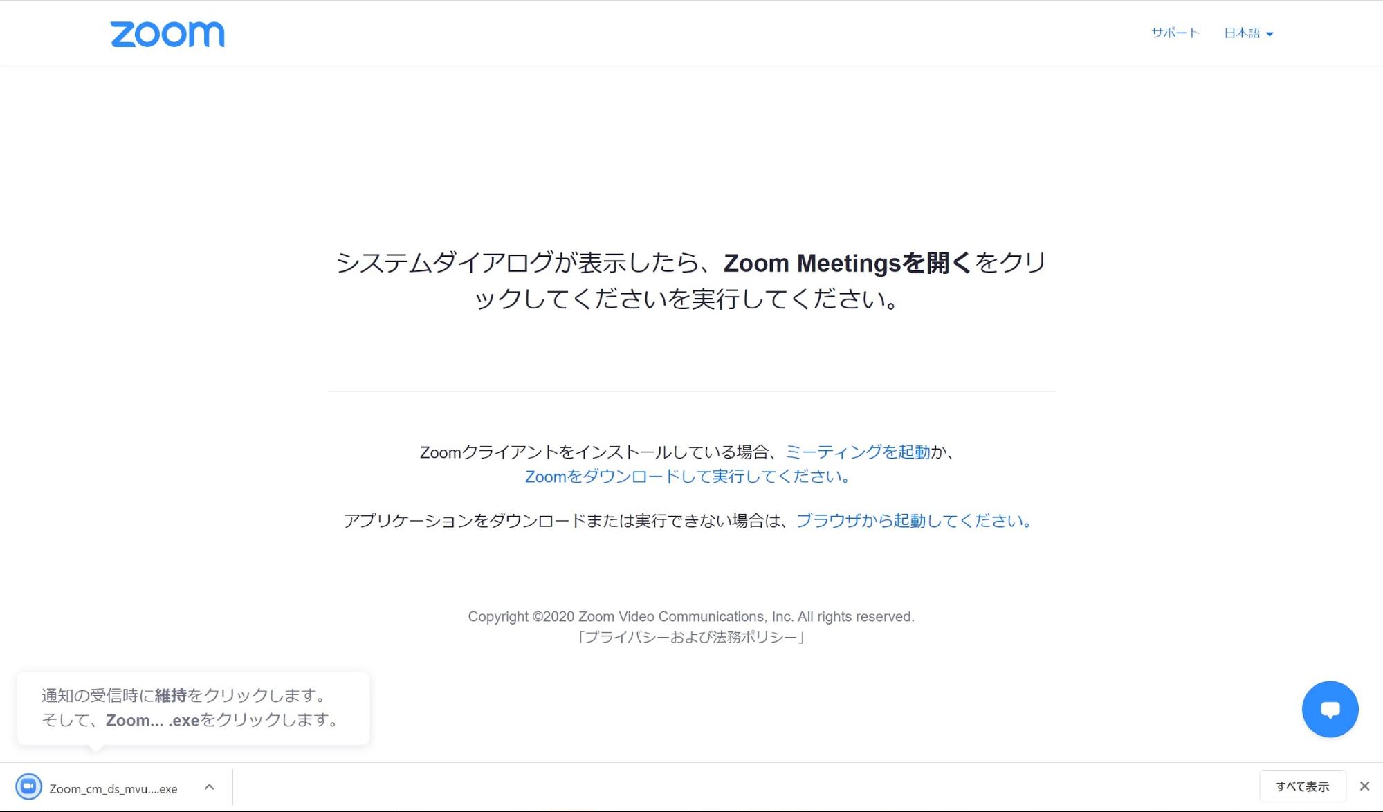 Zoomアプリケーションがインストールされていない場合